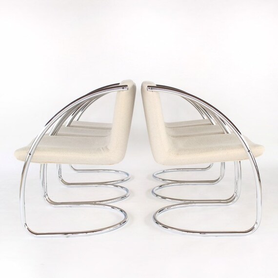 Rare Chrome Cantilever Dining Chairs With Beige Set Of 6 Brayton International Vintage Mid Century Modern In Style Of Mies Van Der Roh
